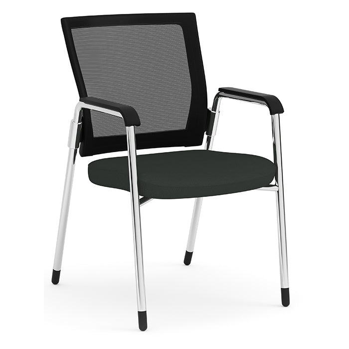 Black mesh back with charcoal black fabric seat and chrome frame